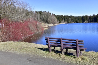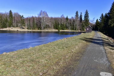 Sur la digue de l'étang supérieur Haus Herzberg Auf dem Damm des Oberen Haus Herzberger Teiches On the dam of the Upper Haus Herzberg Pond