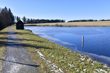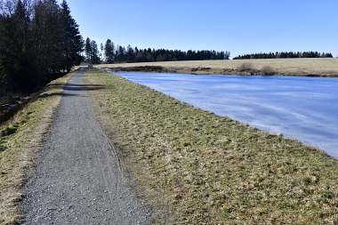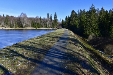 Sur la digue de l'étang Langer Auf dem Damm des Langer Teiches On the dam of the Langer Pond