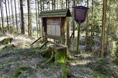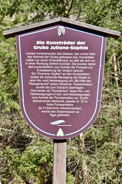 Ici se trouvait la mine Juliane Sophia (en activité de 1776 à 1904) Hier stand die Grube Juliane Sophia (im Betrieb von 1776 bis 1904) Here was the Juliane Sophia Mine (in operation from 1776 to 1904)