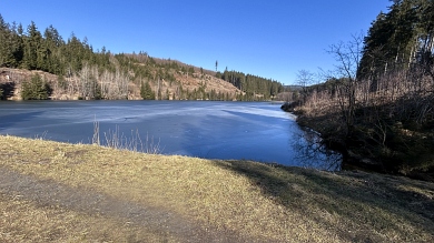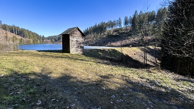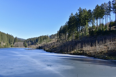 À la digue de l'étang inférieur Spiegelthal Am Damm des Unteren Spiegelthaler Teiches At the dam of the Lower Spiegelthal Pond
