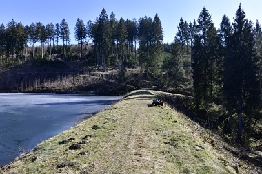 Digue de l'étang inférieur Spiegelthal Damm des Unteren Spiegelthaler Teiches Dam of the Lower Spiegelthal Pond