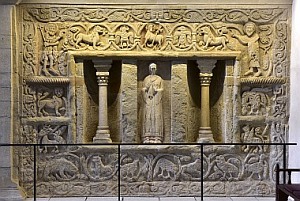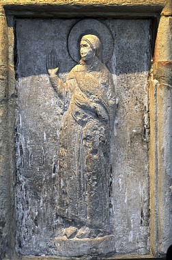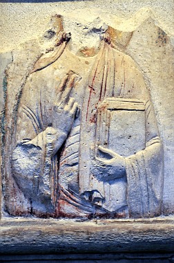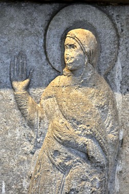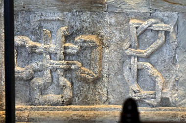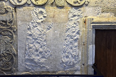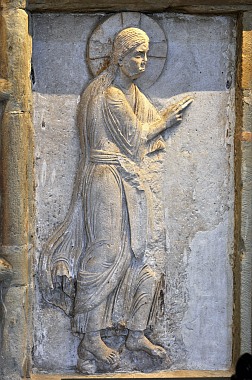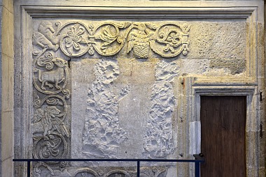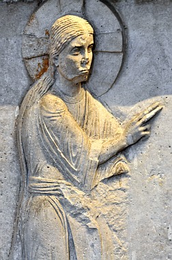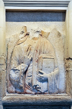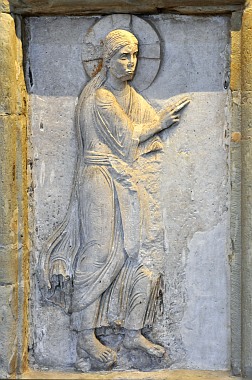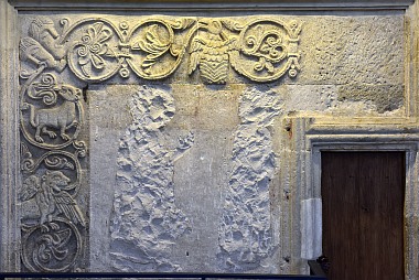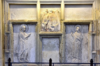 Pierre et Jean courent au tombeau. Les reliefs furent burinés lors de la deuxième réforme en 1616 Petrus und Johannes eilen zum Grab. Der Jüngerlauf wurde bei der Durchsetzung der zweiten Reformation mutwillig abgemeißelt Peter and John rush to the grave