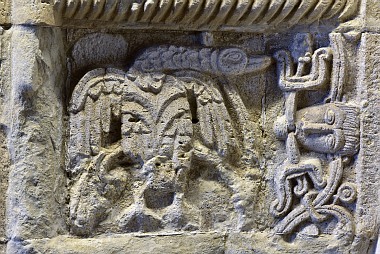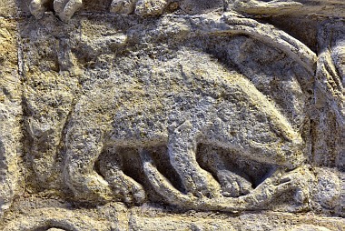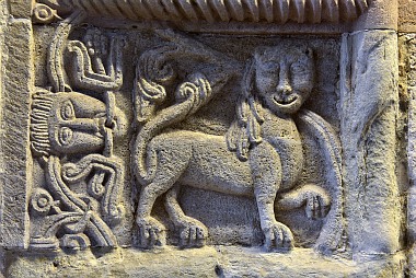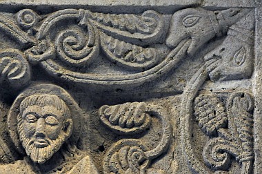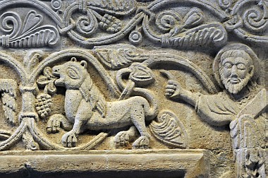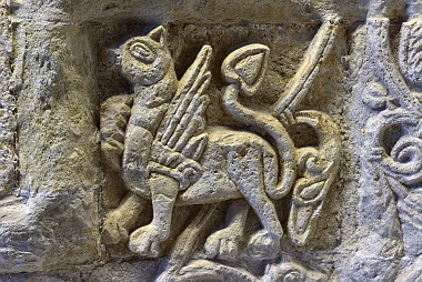Les vrilles de vigne sortent de la bouche de serpents Die Schlangenköpfen spucken die Ranken heraus The serpent heads spit out the vines