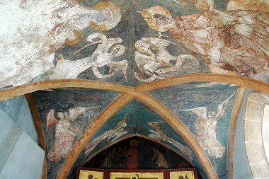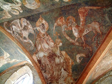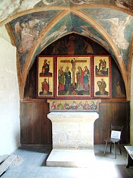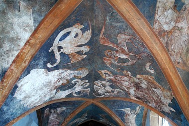 datent des origines de la chapelle stammt aus der Bauzeit Romanesque painted vault