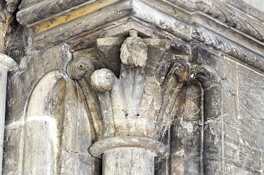 Dans la chapelle de l'Abbé (chapiteau avec tête) In der Abtskapelle (Kapitell mit Kopf) In the Abbots' Chapel (capital with head)