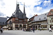 Das berühmte historische Wernigeröder Rathaus und alle seine Holzfiguren